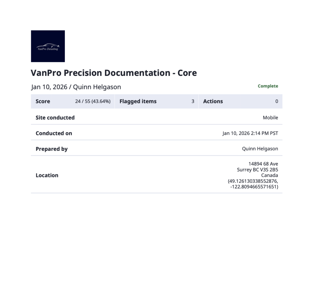 Every time you choose VanPro, your service will follow a structured inspection, precision report, and quality-control process to ensure consistently excellent results.